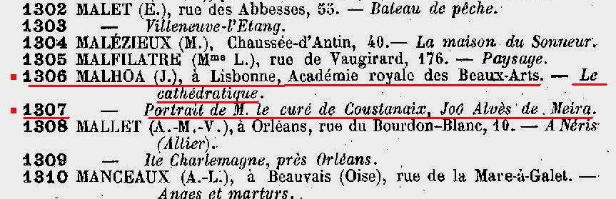 E, finalmente, anota no seu exemplar do Catalogue illustré du Salon, entre Malet e Mallet, a presença hors catalogue e o respectivo número «874a»