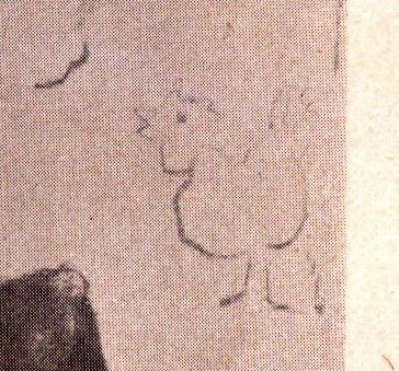 boneco “da galinha e da poia” na margem direita do papel, possivelmente para